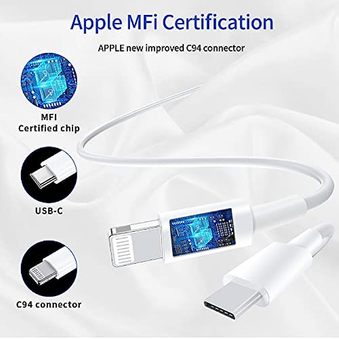 【Apple Mfi Certified】 Made with original Apple Chip, Ximytec type C to Lightning cables full support with iOS versions and all future updates. They adopt the latest and faster charging C94 lightning terminal design,and built-in overvoltage protection ensure your Apple devices are charged safely, at their fastest possible speed.