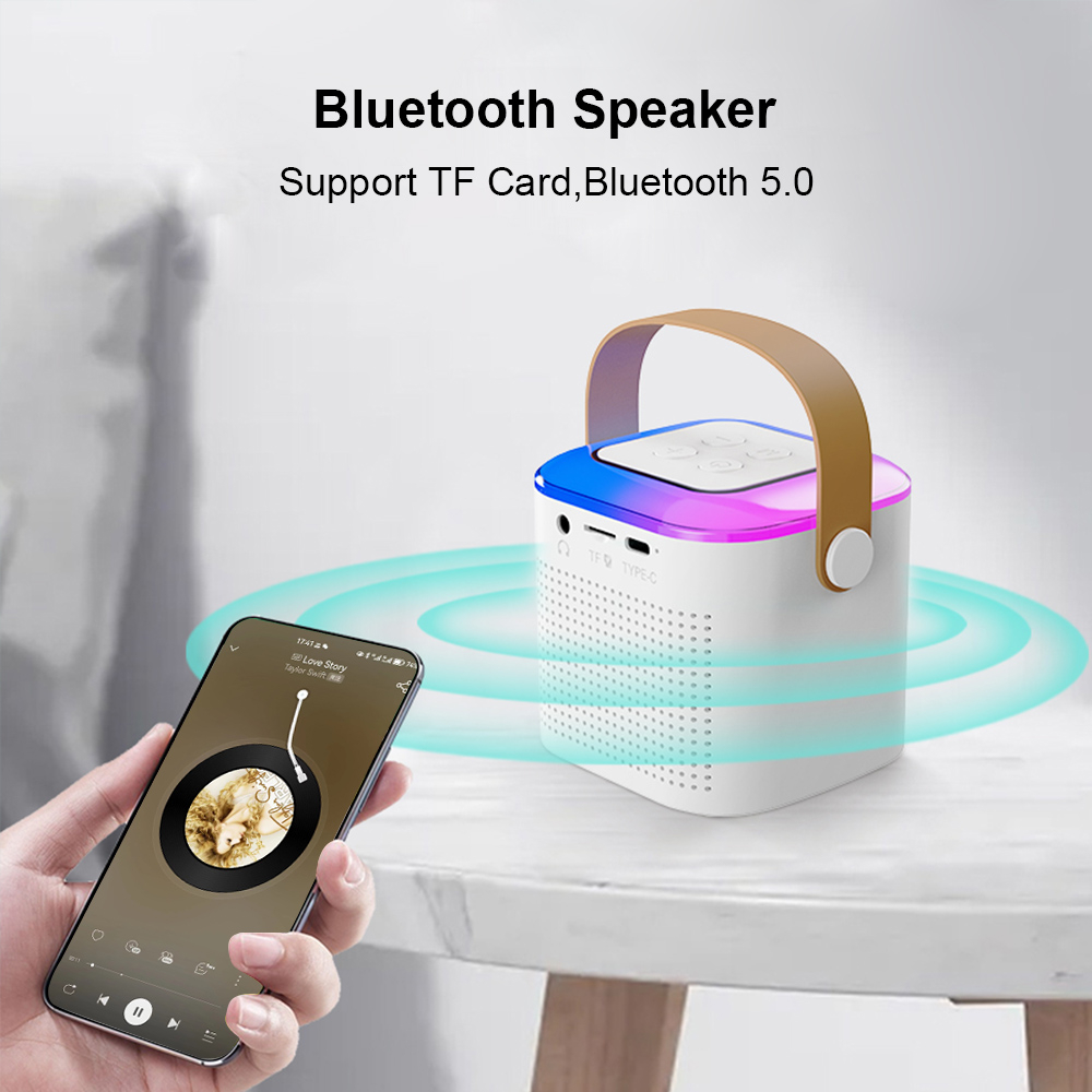Portable Wireless Bluetooth Dual Microphone Karaoke Speaker Machine with colorful night light