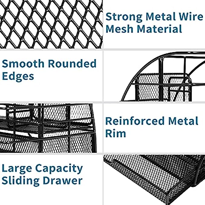 ✏️Office Organizers for Desk: The desktop organizer uses powder coating and electroplating technology, which is wear-resistant, anti-oxidation, and long-lasting. Rounded metal edges and trims protect your desk and make it look great.